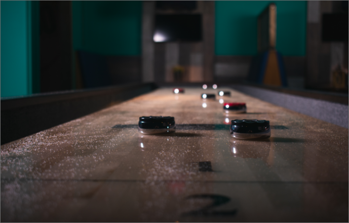 Around for centuries, this team game involves sliding your pucks into the scoring area to grab points for your side. Face-to-face duels for the ultimate in shuffle board social. Shake it. Play it. Win it or lose it.